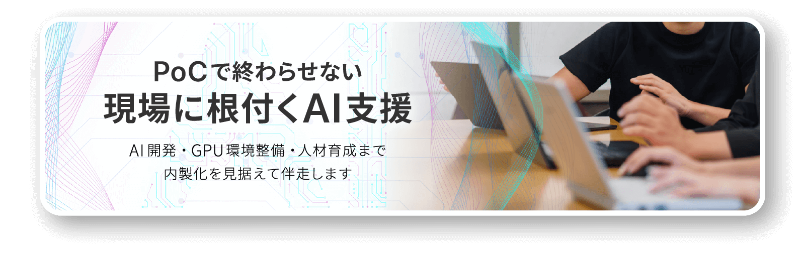 Zerofieldでは、AI受託開発事業も展開しております。AI開発に関するご相談がありましたら、ぜひ【お問い合わせ】よりお気軽にご相談ください。