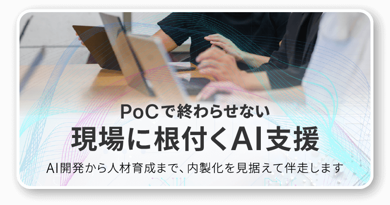 | 早期の価値検証 | 早い段階でAIの費用対効果(ROI)を検証でき、本格開発に進むべきかの的確な経営判断が可能になります。 |